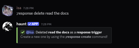 ;prefix set [character]to change the prefix for your server.Creating a new response trigger