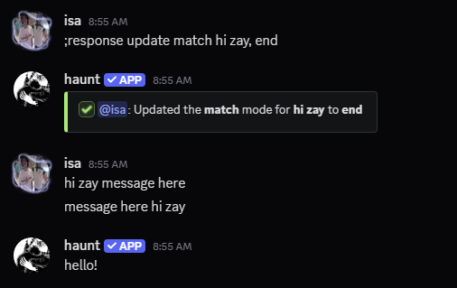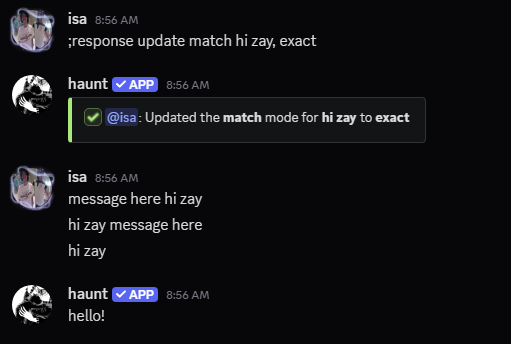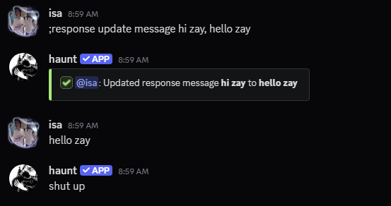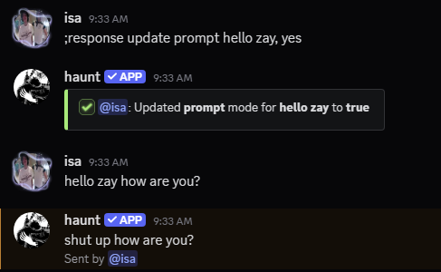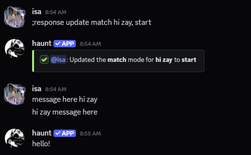 bhisa, haunt will respond to bhisa is cool.Replying to a trigger