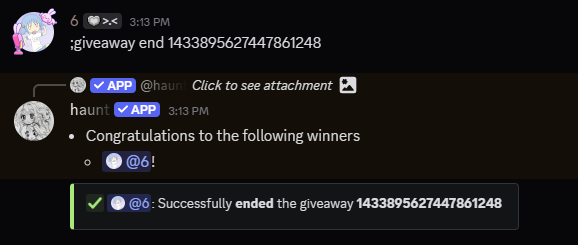 Reroll the winners of a giveaway by using thegiveaway reroll command.