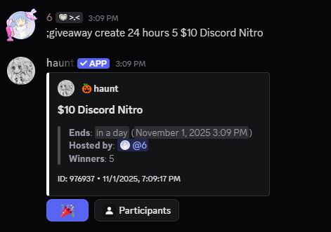 ; by default. Use ;prefix [character] to change it for your server.Start a new giveaway