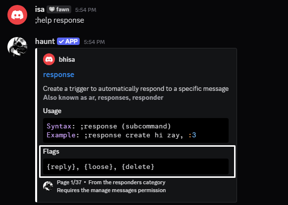 Flags are optional parameters you can use to change how a message or command behaves.Below is an example how to find what commands support flag usage.