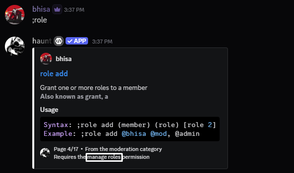Fake permissions allow you grant roles access to Haunt’s commands under a specific permission without needing to give them any dangerous permissions.This is useful incase any one of your moderators decides to go rogue in your server.